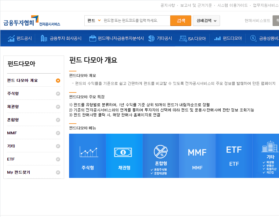 2) 기존의 전자공시서비스와의 연계를 통하여 투자자의 선택에 따라 펀드 및 운용사·판매사에 관한 정보 조회기능