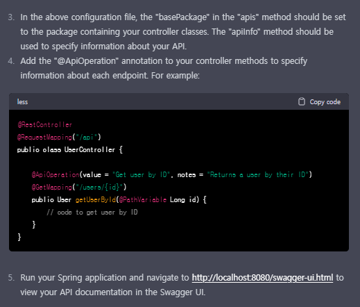 아예 샘플 코드를 포함해서, 정확하게 수정/추가가 필요한 부분을 모두 알려주대요?! 대박..