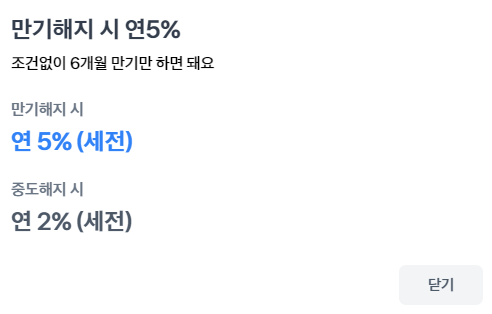 가장 핵심은 조건없이 연 5%의 이자가 적용된다는 점(6개원 만기시)