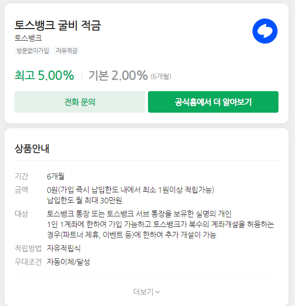 이 외에도, 굴비 적금은 예상 이자, 저축 일정 변경, 자동 이체 등 다양한 기능을 제공하여 사용자들이 적극적으로 저축할 수 있도록 도와줍니다. Toss 앱을 이용하는 사용자라면 누구나 쉽게 굴비 적금에 가입하여 자신의 목표를 달성할 수 있습니다.