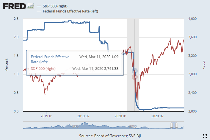(금리 때문에 떨어졌다기 보단, 주식이 폭락해서, 금리를 내려 대응한것이죠)