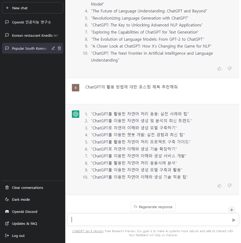 | 직접 써 본 ChatGPT 사용하는 방법(활용 예시,활용 꿀팁) - 챗GPT (6) | 2023.01.27 |