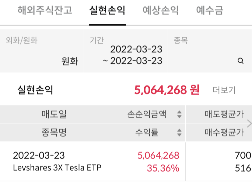 테슬라를 믿고 산 TSL3가 테슬라 과매수 구간으로 판단하여 수익을 보고 매도