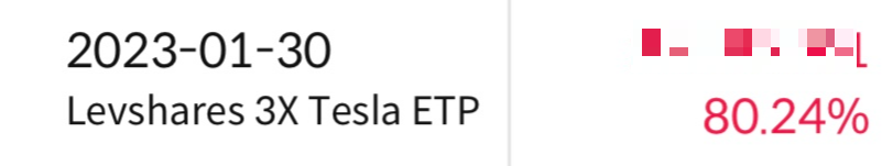 - 특징: 테슬라 주가의 하루 수익률 2배 추종