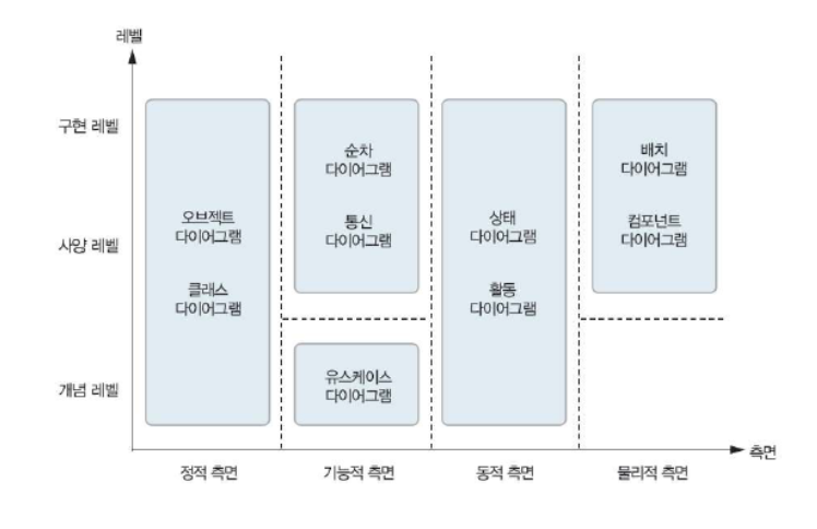 - 종류 : 유스케이스, 행위 다이어그램, 인터랙션 다이어그램, 순차 다이어그램